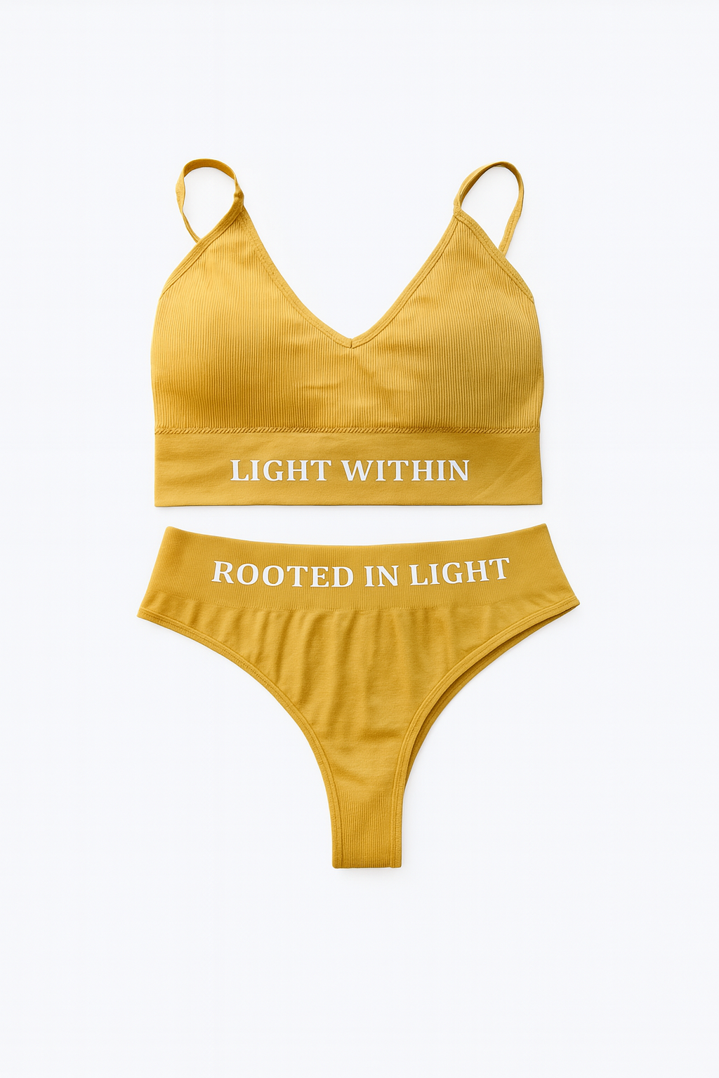 Made from a breathable stretch fabric that moves effortlessly with your body, this set blends comfort and intention through our signature affirmation waistbands — created to affirm your inner radiance and the steady empowerment you carry into every day.